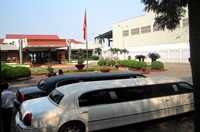 Hammer H3 và Cadillac đặc dụng với sự tháp tùng của hàng trăm ôtô về