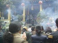 khói hương nghi ngút và sự chen chân của hàng trăm người. Dù đông đúc