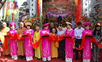 Buổi lễ đã kết thúc hoàn mãn, thắm tình đạo vị. Cuối buổi lễ, chư tôn đức cùng quý vị đại biểu tham dự lễ cắt băng khánh thành di tích lịch sử chùa Thiên Phúc