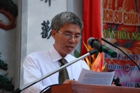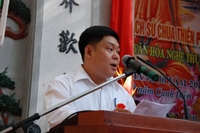 Ông Nguyễn Văn Lưu - Phó ban Kiến thiết trùng tu báo cáo về quá trình trùng tu tôn tạo chùa Thiên Phúc