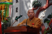 TT. Thích Thanh Hưng - Trưởng ban Hướng dẫn Phật tử Thành hội Phật giáo Hà Nội - Chánh đại diện Phật giáo quận Hoàn Kiếm - trụ trì chùa Thiên Phúc phát biểu: