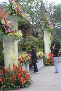 Sân chùa cũng được trang hoàng rực rỡ hơn để đón du khách và phật tử tứ phương về chiêm bái