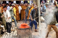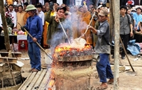 Sau lễ cầu nguyện, các nghệ nhân rót đồng vào khuôn. Công việc được