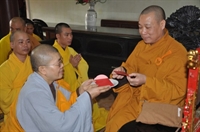 Thích Thanh Huân, mừng tuổi ni trưởng Đàm Nhâm, ni sư Đàm Lan.
