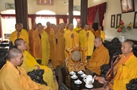 Sau nghi lễ, chư tăng ni đã tổ chức họp mặt Sơn môn và khánh tuế các vị