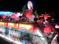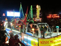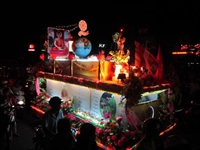 ánh sang đèn hoa về ban đêm khi từng đoàn xe hoa cùng diễu hành trên các