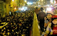 Láng người dân ngồi chật ních, nhiều người khác đứng trên thành cầu