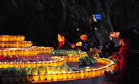 Hàng ngàn ngọn đăng được thả trên dong suối Yến đường vào Chùa Hương ngày Khánh Đản Bồ Tát Quan Thế Âm