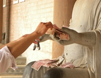 | Bàn tay của vị La Hán này dù rất to lớn, nhưng cũng chẳng thể nhận hết tiền