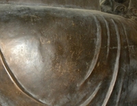 | Tay chân, đầu gối của các vị La Hán đã đổi mầu khi bị khách thập phương chà
