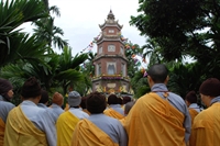 hành tại Tổ đường chùa Bồ Đề. HT Thích Thiện Nhơn – Phó Chủ tịch kiêm