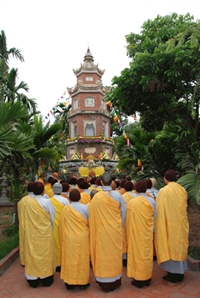 Chư tôn đức Tăng Ni làm lễ tại bảo Tháp