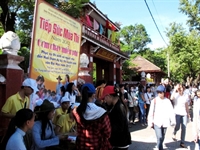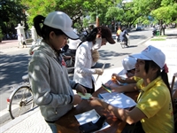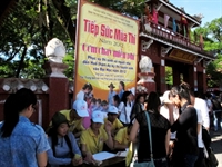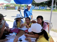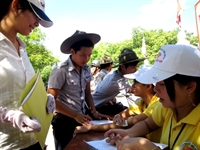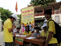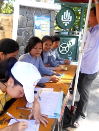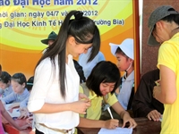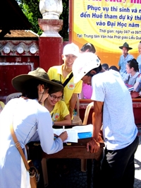 ghi danh sách và phát phiếu cho các thí sinh và người nhà đến Huế dự