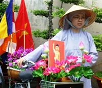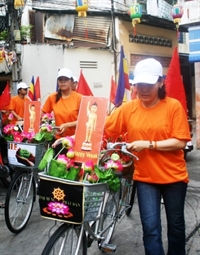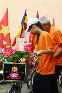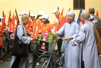 Mô hình rước Phật năng động bằng xe đạp được các bạn trẻ rất ưa thích
