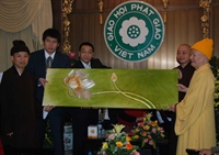 Thanh Tứ đại diện cho Giáo hội Phật giáo cũng tặng các nhà đầu tư bức