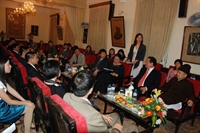 gặp, nhà đầu tư đến từ Mỹ đã trao quà tặng là bức tranh “Sen Việt” cho