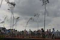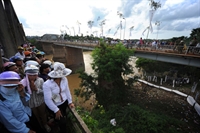 | Mọi người đứng ở hai bên thành cầu nhìn xuống sông cầu nguyện cho những nạn nhân xấu số. |