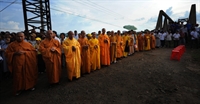 | Các hòa thượng ra bên thành cầu để tụng kinh cầu siêu. |