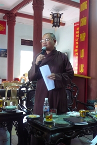 minh và chủ toạ cuộc họp là hoà thượng Thích Thanh Dục - Uỷ viên HĐTS