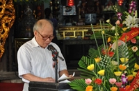 Ông Đặng Đình Lưu - trưởng ban công tác mặt trận khu dân cư Bồ Đề đại diện nhân dân, phật tử địa phương phát biểu cảm tưởng