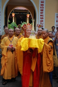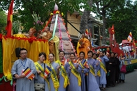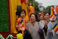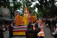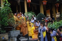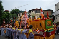 Tại Hoàng thành Thăng Long, hàng ngàn Phật tử đã cung nghênh trong niềm thành kính.