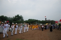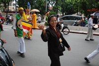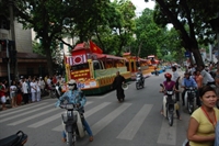 Đoàn rước trên phố Điện Biên Phủ, ngang qua Cột cờ Hà Nội