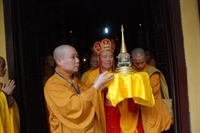 Ban Tổ chức đã làm lễ an vị xá lợi Phật tại Hoàng thành, phục vụ nhu cầu chiêm bái của Tăng Ni, Phật tử tham dự Đại lễ.