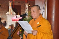 TT Thích Bảo Nghiêm thay lời Đức đệ tam Pháp chủ tuyên đọc tán lễ cố Đại lão Hòa thượng đệ nhất Pháp chủ