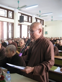 Tại buổi sơ kết, chư Tôn đức đã góp ý vào báo cáo sơ kết và phương