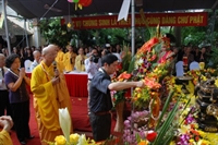 thúc chư tôn đức cùng đại diện các vị lãnh đạo niêm hương, tắm Phật và