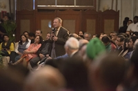 Hình: Một Thính giả hỏi Đức Đạt Lai Lạt Ma trong buổi nói chuyện của