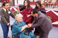 Trên Pháp tòa, Ngài trao chiếc khăn choàng truyền thống. Ngài đã hòa mình trong ánh đèn lung linh, các thành viên của dàn hợp xướng, một khúc hát đại đoàn kết. Bà Giáo sư Ameeta Mulla Wattal tuyên bố rằng: “Là một giáo viên và đồng nghiệp của tôi đều tự cảm thấy có trách nhiệm của mình để định hình tâm trí của thế hệ trẻ với quan điểm cho rằng Từ bi là giải pháp trị liệu. Giáo sư cho biết; họ đã ước mơ được thỉnh đức Đạt Lai Lạt Ma chia sẻ Pháp thoại tại các trường học và bây giờ rất hài lòng với giấc mơ đã thành hiện thực. Giáo sư thỉnh cầu Ngài tương tác các tâm hồn trẻ và giáo viên để cùng chia sẻ Pháp thoại.