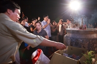 Hàng vạn phật tử cùng khách thập phương tập trung ở sân dưới chuẩn bị làm lễ.