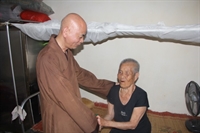 Thượng tọa trụ trì trao quà tại Bệnh viện Phong – Da liễu Văn Môn