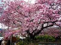 | Một gốc anh đào khá to đang nở bung hàng ngàn cánh