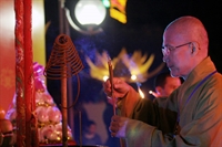 Đây là chương trình do TW giáo hội Phật giáo Việt Nam tổ chức, nhằm kêu gọi ủng hộ đồng bào lũ lụt miền Trung, mong cho quốc thái dân an và cầu siêu cho các anh hùng liệt sỹ hy sinh vì nước nhà Mở đầu đêm cầu nguyện là nhiều tiết mục biểu diễn của các phật tử. Tiết mục Phật bà nghìn tay nghìn mắt được dàn dựng rất công phu. Đêm hội hoa đăng diễn ra các khóa lễ theo đúng nghi thức Phật giáo, bắt đầu tưởng niệm, tri ân và cầu siêu cho các anh hùng liệt sĩ, người có công với đất nước. Các tăng ni đang thắp nến chuẩn bị cho đêm hội hoa đăng. Ai cũng tỏ vẻ thành kính. Khi những ngọn nến được thắp lên.... ... cũng là lúc tiếng mõ ngân vang, bắt đầu lễ cầu siêu cho các anh hùng liệt sỹ, có công với đất nước. Hàng Chư tôn đức giáo phẩm làm lễ cầu nguyện hòa bình. Họ cầu nguyện cho quốc thái dân an, cầu cho thế giới hòa bình. Nén nhang cầu siêu cho những người tử nạn trong đợt mưa lũ vừa qua ở miền Trung. Những chiếc hoa đăng đầu tiên được thắp sáng. Các phật tử nhanh chóng thắp sáng những ngọn nến khác. Câu lạc bộ Thanh niên Phật tử thành hội Hải Phòng và chùa Nam Hải (Hải Phòng) tay cầm những ngọn hoa đăng với lòng tri ân sâu sắc tới những vị anh hùng hy sinh vì đất nước. Đông đảo phật tử bốn phương cũng tới dự. Những ngọn hoa đăng thắp sáng quảng trường cung văn hóa hữu nghị Việt Tiệp.Lê Hiếu (Vnexpress)