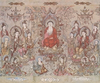 Avatamsaka, Vairocana in the center, Samantabhadra in the left, and