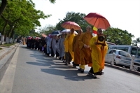 | Chư Tăng Ni đi bộ diễu hành hơn 1km trên đoạn đường Thanh Niên để ra xe hoa |