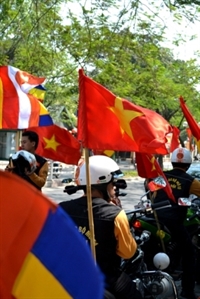 | Cờ Tổ quốc và cờ Phật giáo tung bay biểu trưng cho sự hòa quyện của đạo Pháp và Dân tộc |