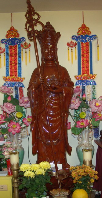 Bên phải Đức Địa Tạng Vương Bồ Tát là: