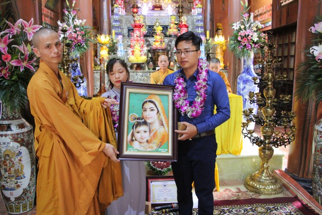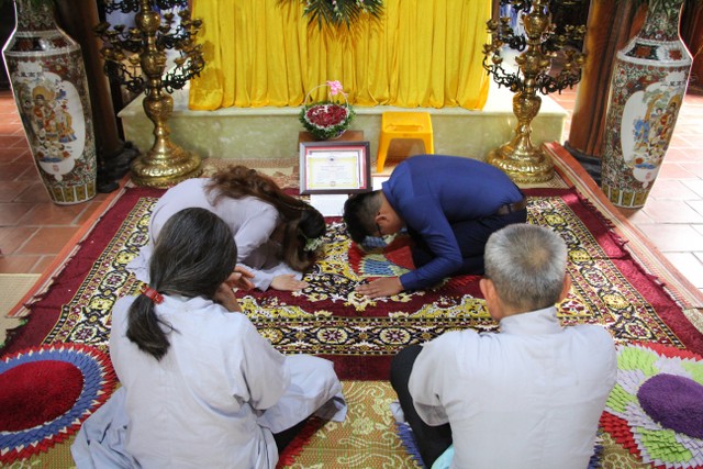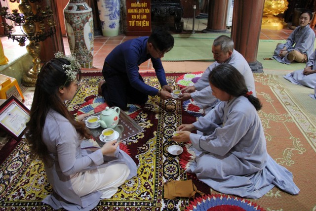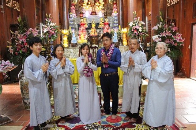 Hai bạn trẻ làm lễ hằng thuận cùng gia đình tại chùa Từ Xuyên