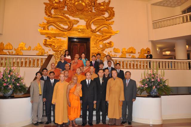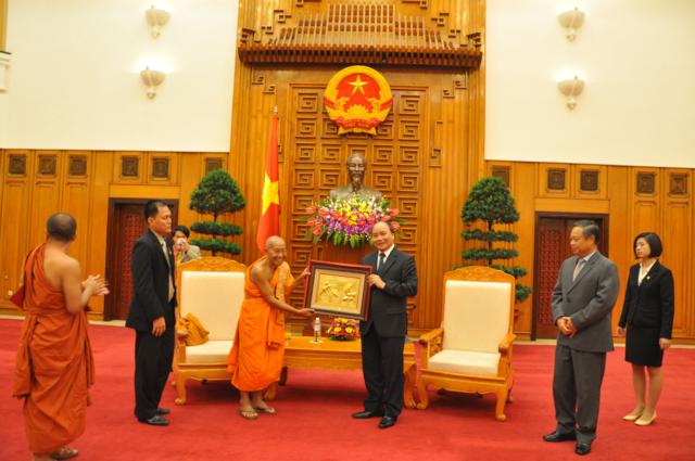 Kế tiếp đoàn đã tới thăm tại Trụ sở Chính phủ, Phó Thủ tướng Nguyễn Xuân Phúc đã tiếp Đại Tăng thống Vua Sư Tep Vong,