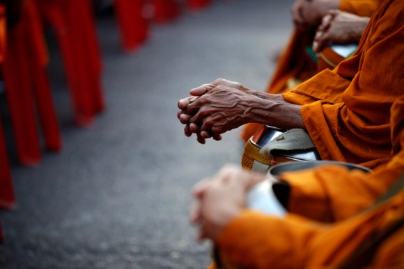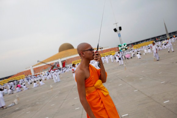 Các nhà sư đang tham gia Ngày lễ bố thí ở Bangkok, 08/05/2011.