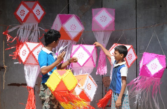 Cậu bé người Sri Lanka đang bán đèn lồng cho khách hàng trước dịp Lễ