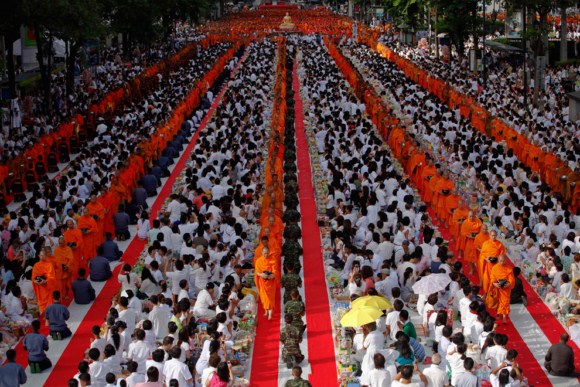Hàng ngàn nhà sư đi giữa những Phật tử trong Ngày lễ bố thí ở Bangkok.