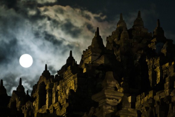 Trăng tròn trên ngôi chùa Borobudur trong ngày rằm tháng Tư, Lễ Phật Đản.
