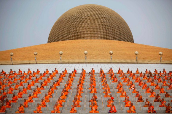 ngôi chùa thuộc tỉnh Nakhon Pathom, ngoại ô Bangkok nhân ngày Lễ Phật