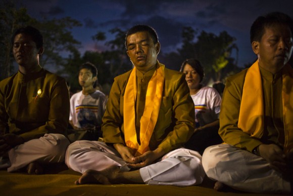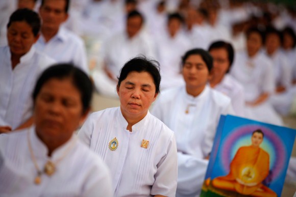 Các tín đồ Phật Giáo đang tịnh tâm ở Phật Đài Wat Phra Dhammakaya trong dịp Lễ Phật Đản.