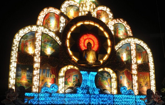 Một bức phông trang trí hình ảnh về dịp Lễ Phật Đản ở Colombo, Sri Lanka.