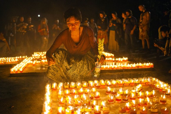 Phật tử thắp đến ở chùa Borobudur, Indonesia nhân Lễ Phật Đản.